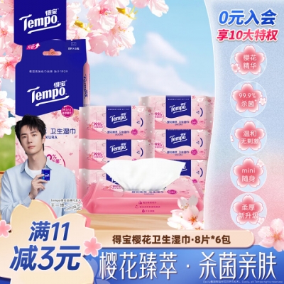得宝(TEMPO)一博同款 樱花杀菌湿巾...