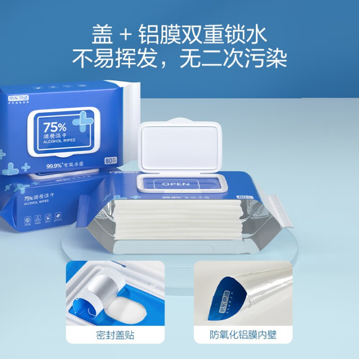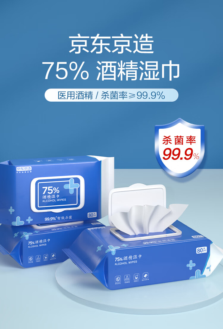 75%酒精湿巾80片*3包 杀菌率99.9% 湿纸巾 卫生消毒湿巾