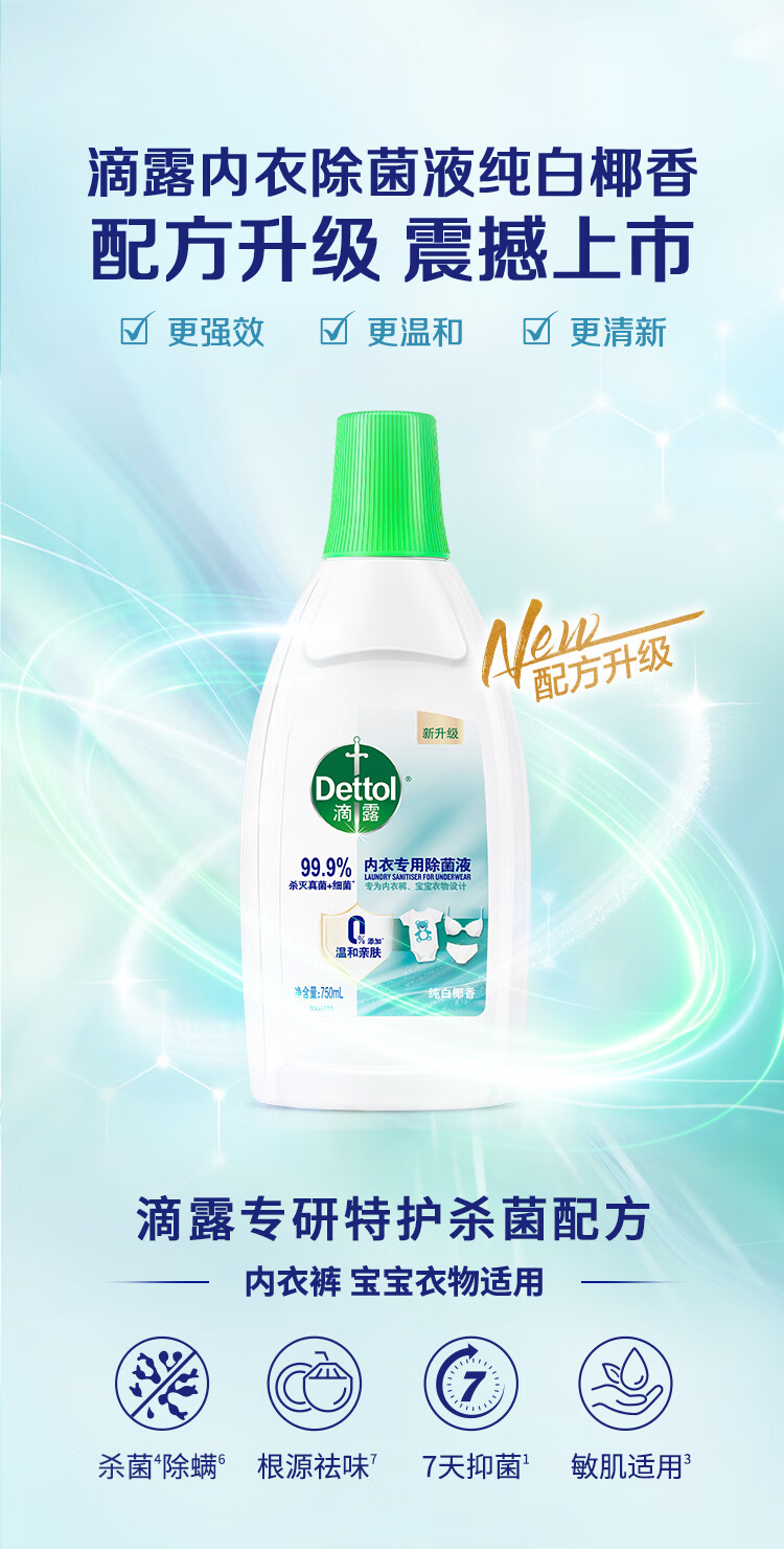 滴露(Dettol)衣物内衣除菌液 纯白椰香750ml 99.9%灭真菌衣物消毒儿童适用