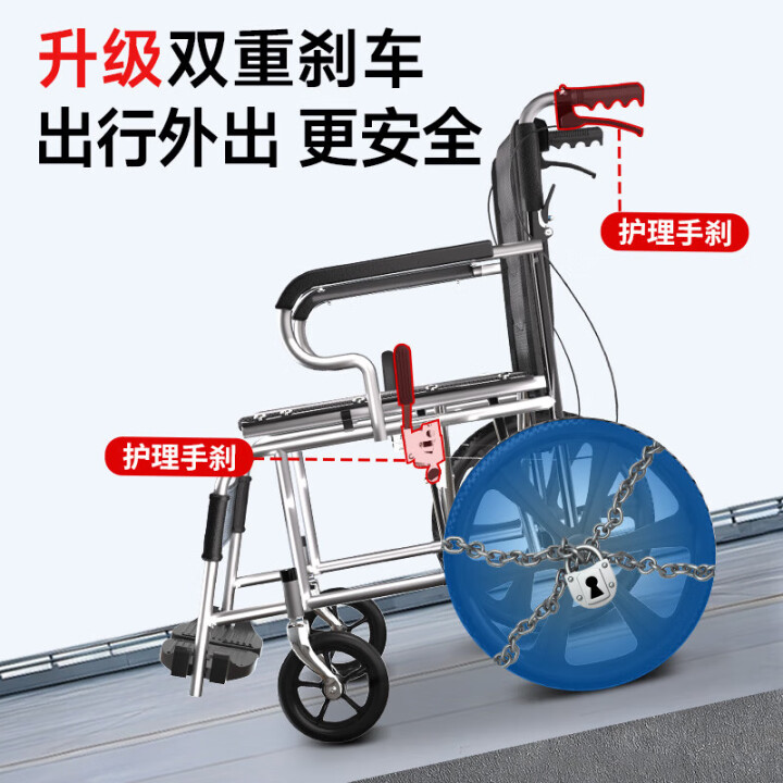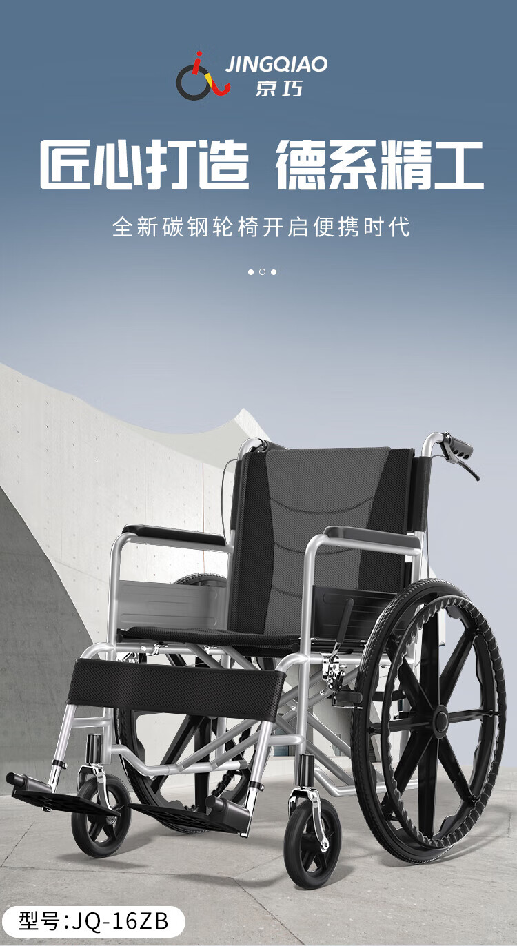 京巧轮椅轻便折叠老人旅行手动推车可折叠便携式家用坐便SYIV90-MK-1 【店铺热销】轻便折叠小轮款